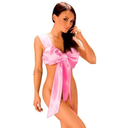 Floral lace thong teddy with lace up front and adjustable cross over back straps.